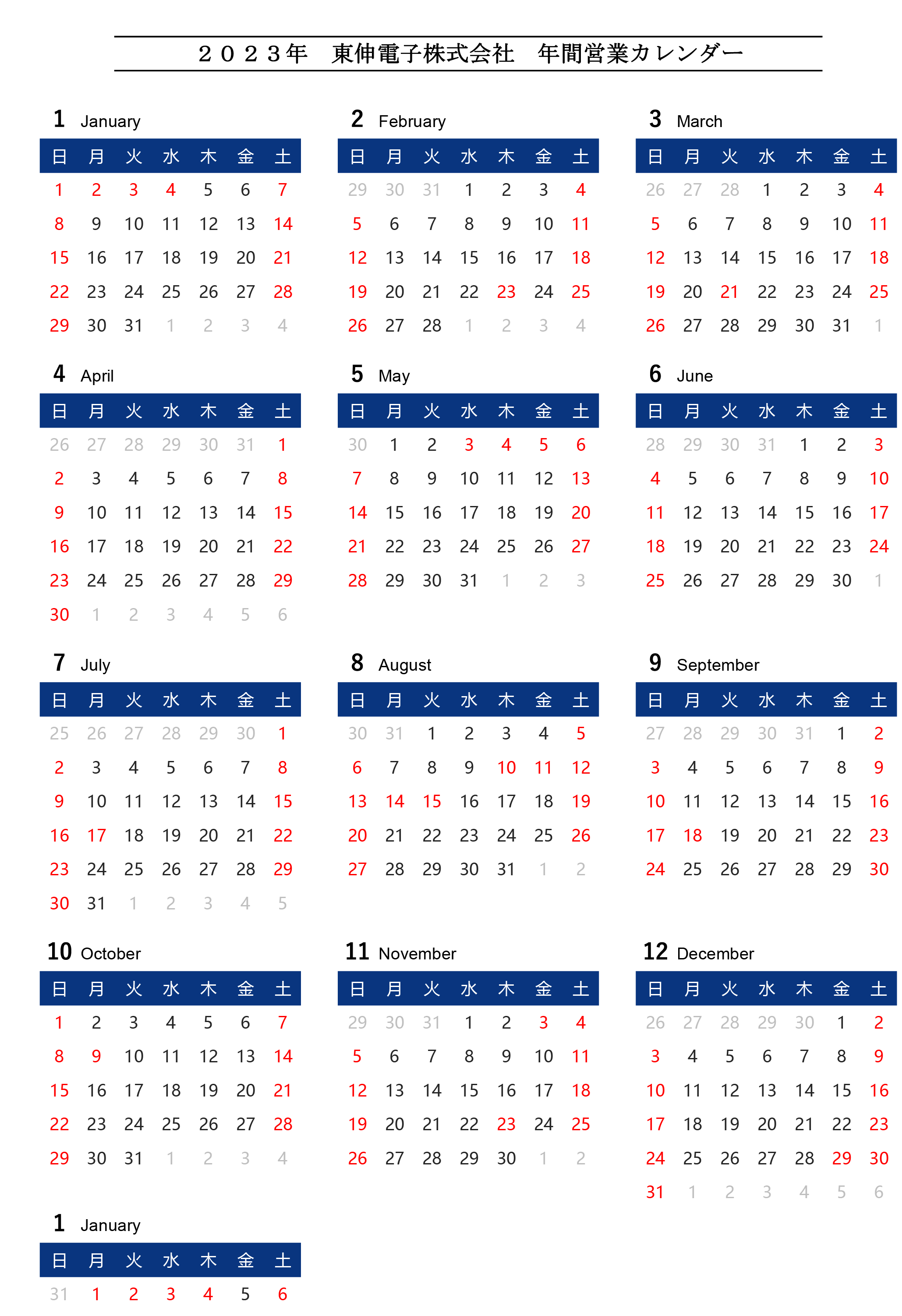 東伸令和5年 営業日カレンダー